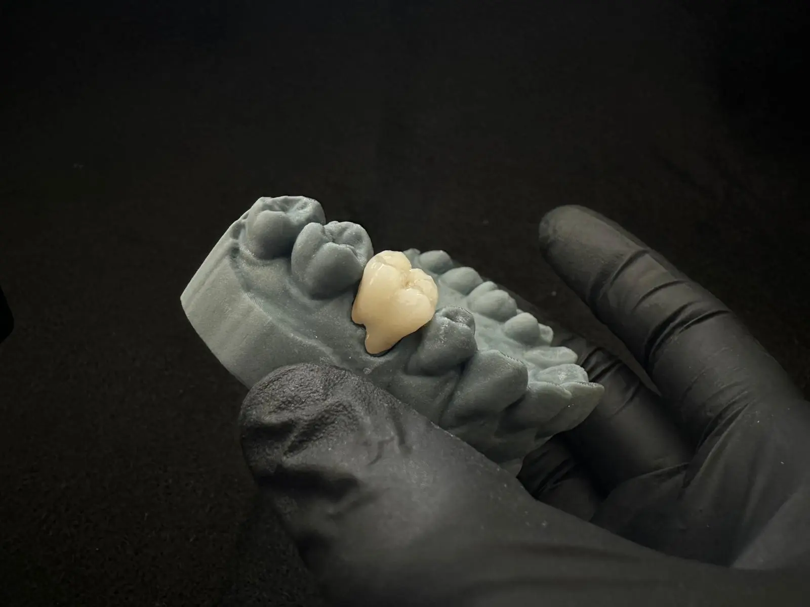 Grâce à la CFAO intégrée, nous réalisons des provisoires implantaires précis et parfaitement ajustés.